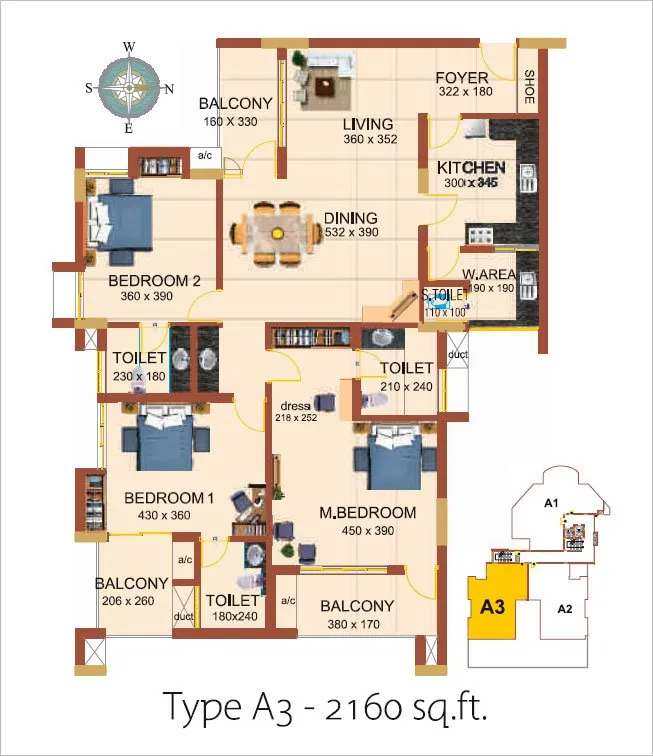 Split AC provision for all bedrooms and living/dining rooms.