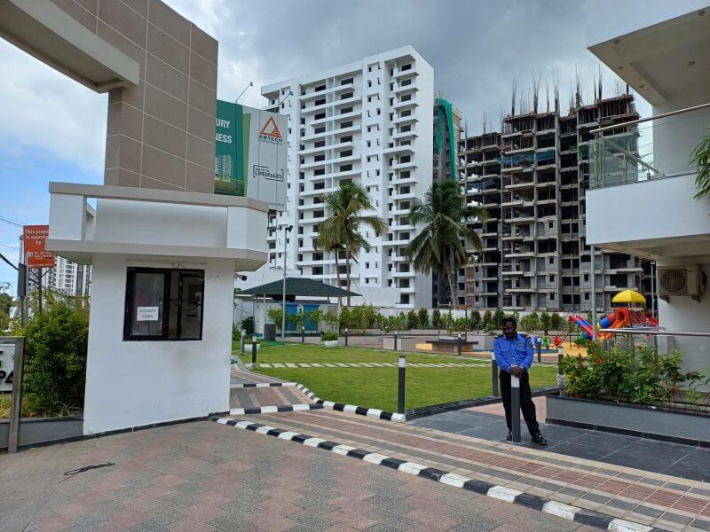 - Internal Finishes- Door frame fixtures – (126 flats) 95% completed, Main door fixing – level 3,4,5,6,7,8 9 completed Putty and painting works -Level 2 to level 17 – 95% completed, level 17 -40% completed,Waterproofing (level 2 to 17) all toilets in bedrooms & balcony completed, terrace floor 98% completed,OHT – completed, podium level – 40% completed, Wall Tiling – Level 3 – level 12 – 95% completed, Level 2,12,14,16 progressing Floor tiling – level 3 – level 12- 95% completed, Level 2,12,14,16 progressing HANDRAILS -Main stair Handrail completed,Fire stair handrail-95%completed