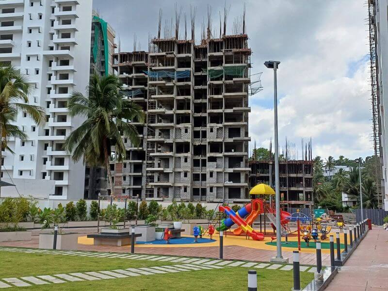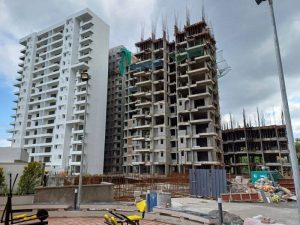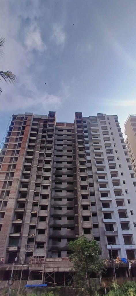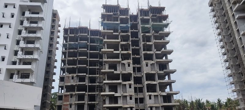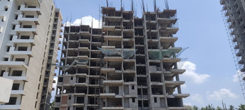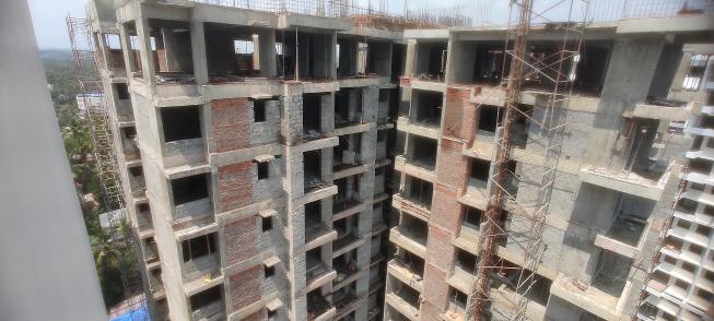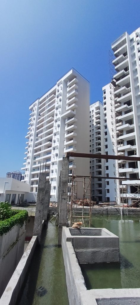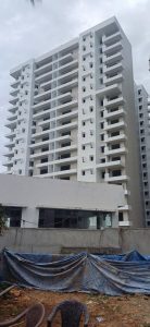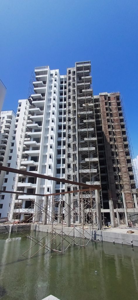 - Structural Works – Footings – 95 nos completed out of 95 including lift, Raft slab completed – 95% completed, Roof slab – Stilt 2 level roof slab 90 % completed, Stilt 1 – roof slab 90% completed, Roof slab podium – 80% completed, Podium slab pool area except STP area – wall of pool deck completed, Level 1 to 13 – Type A, B, C & D flats completed, Level 5,6,7 Flat E & F completed
