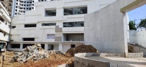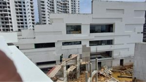 - Structural Works – Footings – 100 % completed, all slab completed – (98% of overall completed), RCC of treated water tank cover slab, Fire and drinking water tank wall and cover slab, Main stair cover slab and beams, terrace parapet 100% completed , rear side RCC retaining wall (35m) completed.