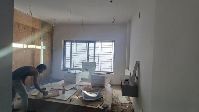 - Civil Works – Ceiling plastering and wall plastering – 100 % completed, Masonry – Block/ brick- 100 % completed, Internal plaster – 100 % completed