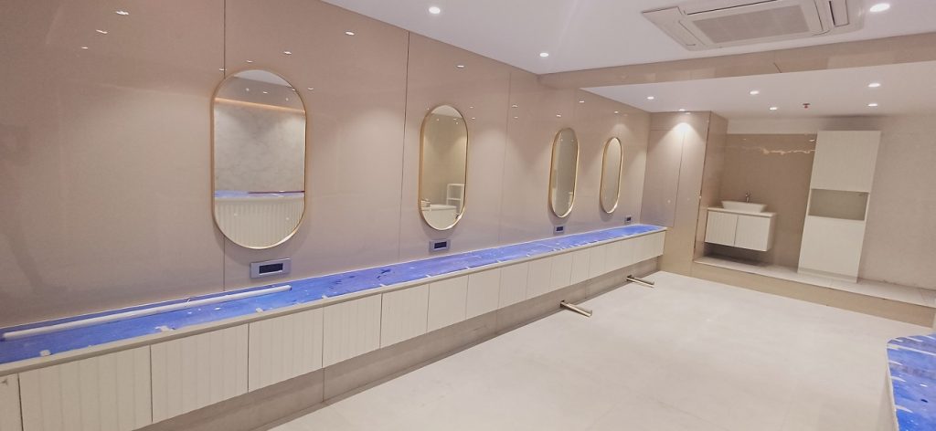 - Internal Finishes – Main door – 100% completed, Waterproofing- 100% completed, Wall Tiling Work – 99% completed, Flooring – 99% completed, Putty works & Painting – 91% completed, Door frame fixtures – 100% completed, Handrails – 100% completed