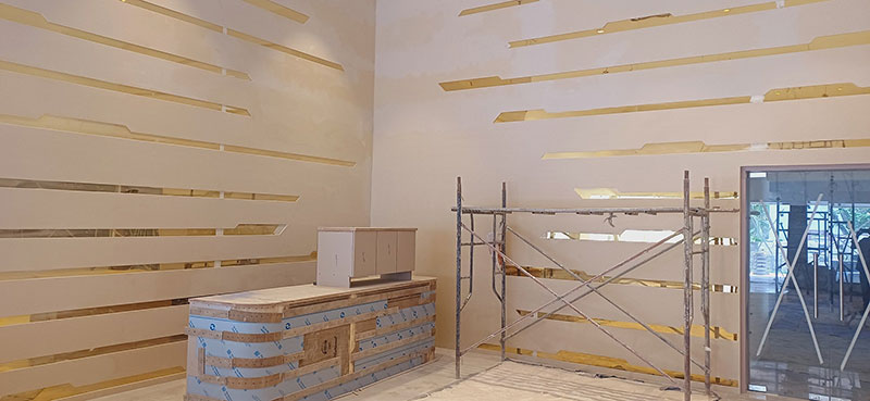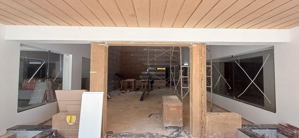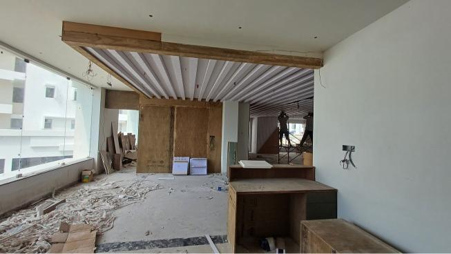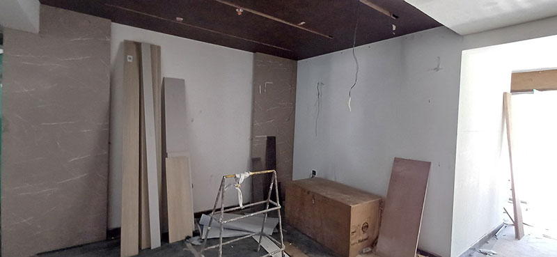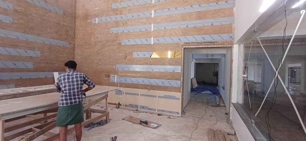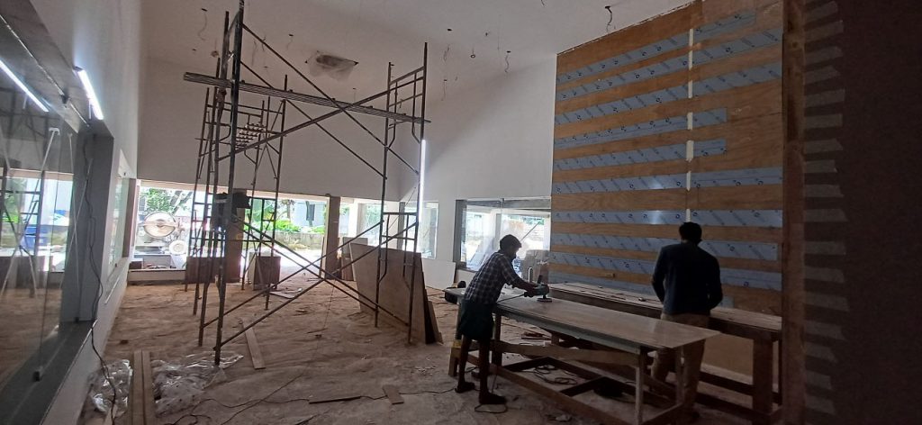 - Interior work – Interior ceiling work – 100% completed, Wood work – completed, Furniture -30% completed, painting (PU) – 100% completed
