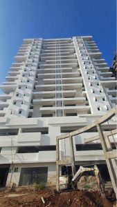 - Final Finishes – Door shutters and iron mongery – Main door shutter & aluminium windows for lvl2, 3,4 ,5,6,7,8,9 ,10& 11 fixed Final painting – First coat painting – level 3,4,5,7,8 .9,10,11 100% completed,2,12,14 in progress ,Plumbing & sanitary ware – vertical duct lines from level 1 to 17 -70% completed ,CP Fixtures 14 flats completed ,Electrical final fixtures – switches and sockets14 flats completed Firefighting final fixtures -14 flats completed