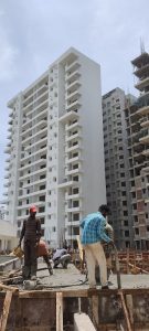 - Structural Works – Footings – 122 nos: completed out of 136 nos:, Basement slab @ 101.35 – 65% completed & Basement slab @ 104.35 – 75% completed, sub structural works – 75% completed, slab completed – up to 17th level 100% Completed, 18th level (roof slab – terrace) – completed, Stair case roof slab, LMR base slab, Water Tank base slab – completed
