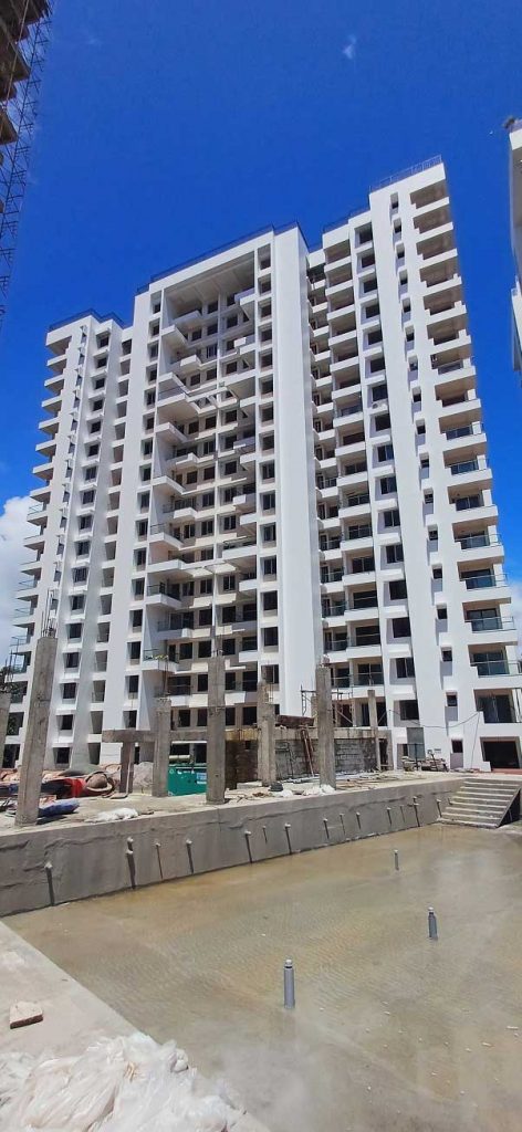 - Final Finishes- Door shutters and iron mongery – Main door shutter & aluminium windows for lvl 3,4 ,5,6,7,8,9 & 10 fixed Final painting – First coat painting – level 3,4,5,7,8 .9,10,11 100% completed,Plumbing & sanitary ware – vertical duct lines from level 1 to 17 -70% completed ,CP Fixtures 4 flats completed ,Electrical final fixtures – switches and sockets12 flats completed Firefighting final fixtures -12 flats completed