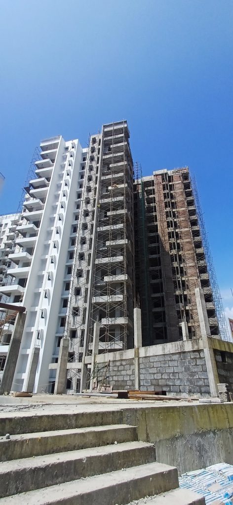 - Civil Works – Ceiling plastering – stilt 1 level 100% ceiling plastering completed, Masonry – Block/ brick- up to 16th level completed, P1, P2 Passage brick work completed, Brick work – 17th floor Completed, Internal plastering – ceiling and wall – up to 17th level completed except client change apartments, Passenger lift 2Nos: completed