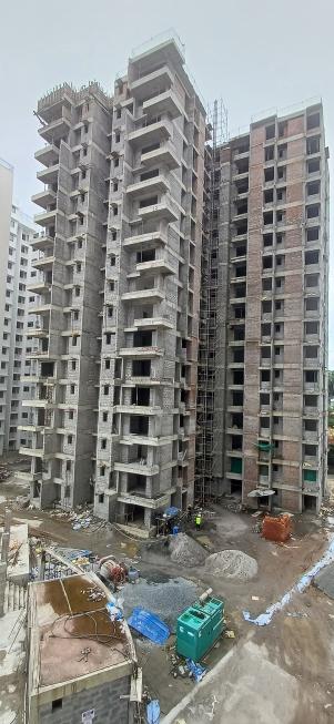 - Structural Works – Footings – 95 nos completed out of 95 including lift, Raft slab completed – 95% completed, Roof slab – Stilt 2 level roof slab 90 % completed, Stilt 1 – roof slab 90% completed, Roof slab podium – 80% completed, Level 1 to 13 – Type A, B, C & D flats completed, Level 3,4 Flat E & F completed, STP – walls and base slab completed, cover slab – 95% completed