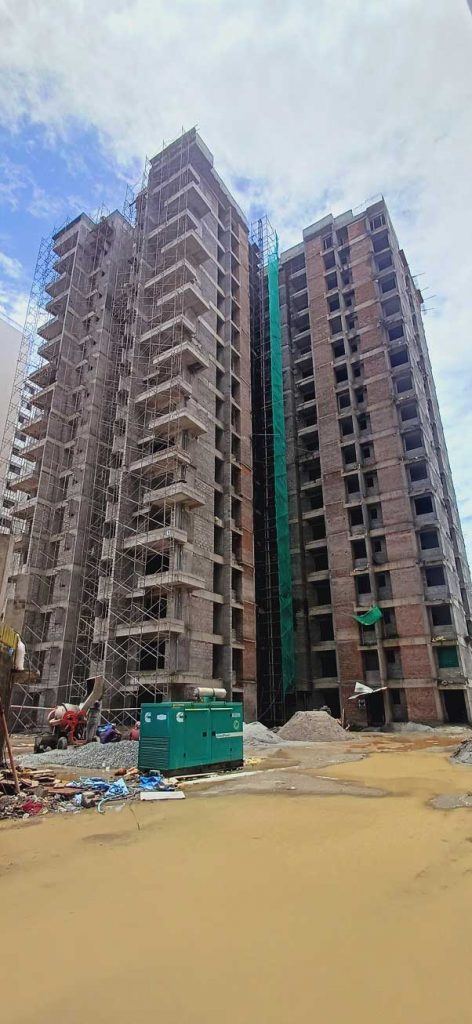 - External Finishes – A & D front area external plastering completed, Service lift rear side external plastering completed, A flat rear side m bed external plastering completed, D Flat rear side palstering completed, External Painting – 15% completed