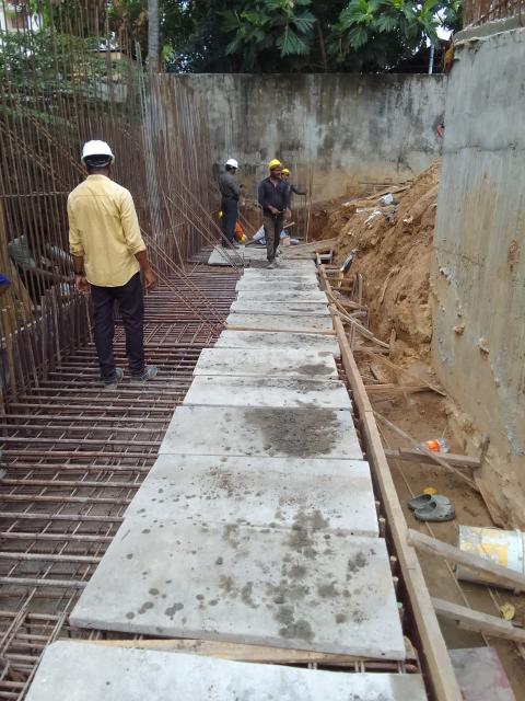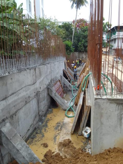 • Sub Structural Works – Earth back filling – 60m3 to be completed, pile chipping – 11 more nos: to be completed, pilecap RCC – 1m3 to be completed, Column and shear wall RCC 20m3 to be completed, retaining wall RCC – 20m3 to be completed, Basement floor Roof slab RCC – 85m3 to be completed, GF roof slab 75m3 to be completed