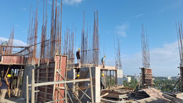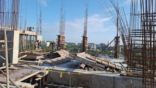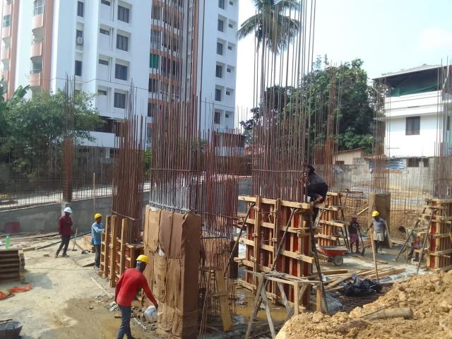 • CIVIL WORKS Pile Cap , Plinth beam, Base slab- 100 % completed; Sump tank-100 % completed;Boundary wall works-85 % work Completed;Columns & Shear wall-Basement to 13th Floor – 100 % Completed,14th Floor column work – 90% work completed;Slabs & Beam-Ground to 14th floor – 100 % completed,15th Floor slab work ongoing
