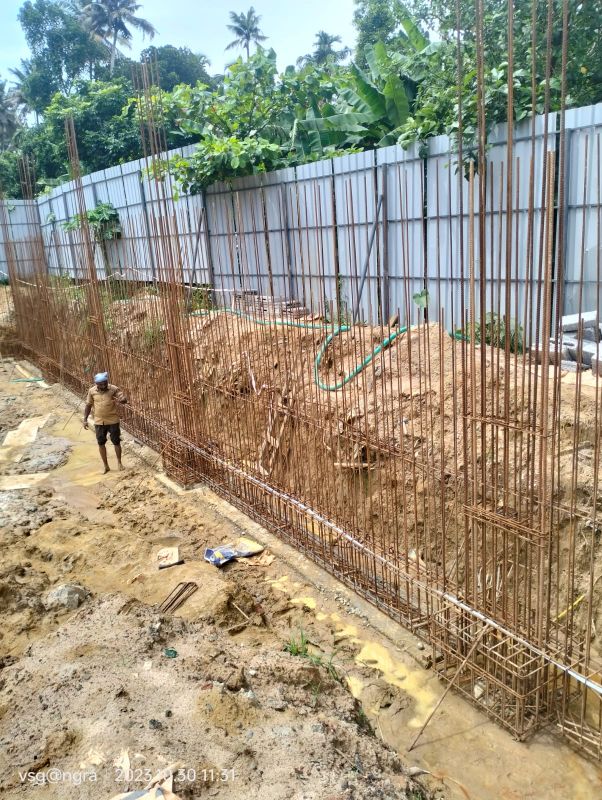 • Sub Structural Works – Earth work – 245m3 to be completed, pile chipping – 14 more nos: to be completed, PCC work – 25m3 to be completed, pilecap RCC – 42m3 to be completed, plinth beam and raft slab – 70m3 to be completed, Column RCC – 10m3 to be completed, retaining wall RCC – 8m3 to be completed, Boundary wall RCC – 22m3 to be completed, Roof slab RCC – 95m3 to be completed