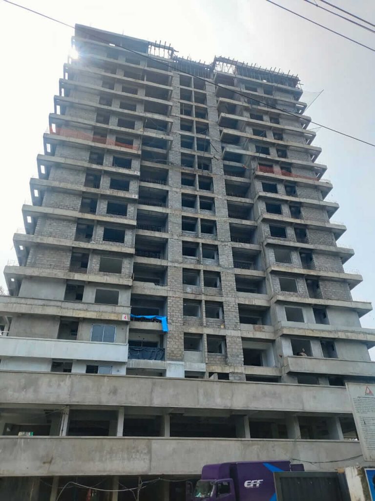 • CIVIL WORKS Pile Cap , Plinth beam, Base slab- 100 % completed; Sump tank-100 % completed;Boundary wall works-85 % work Completed;Columns & Shear wall-Basement to 15th Floor column work – 100% work completed;Slabs & Beam-Ground to 16th floor – 100 % completed,Terrace Floor slab work ongoing