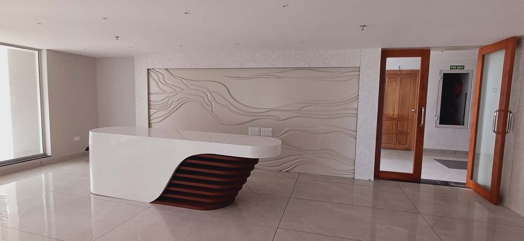 - Internal Finishes – Flooring – BF 1, BF 2, GF 100% to be completed, 2nd floor, 4th floor, 5th Floor, 6th floor, 8th floor, 9th floor, 10th floor, 11th floor, 12th floor 100% to be completed, Wall Tile work – 5th floor , 6th floor , 7th,8th,9th,10th,11th,12th floor, 13th floor, 14th floor, 15th floor, 16th floor – 100% to be completed, ramp tiling – 90% to be completed, terrace 100% to be completed, Handrail – Mainstair handrail – 100% to be completed, painting – 1st and 2nd coat emulsion 10 flats to be completed